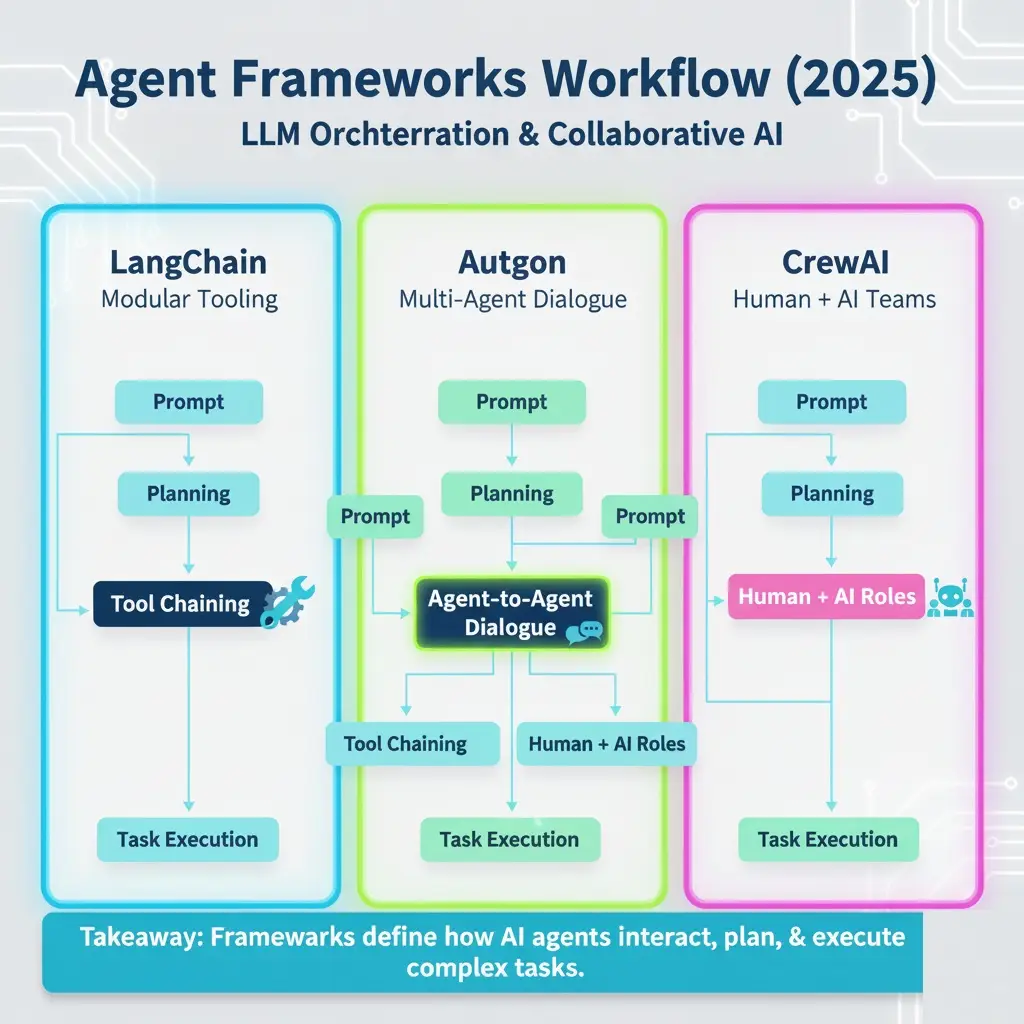 Agentic AI isn’t just about smarter models — it’s about frameworks that help them act, plan, and coordinate. Three leading contenders dominate the space: LangChain, AutoGen, and CrewAI. Here’s how they compare.