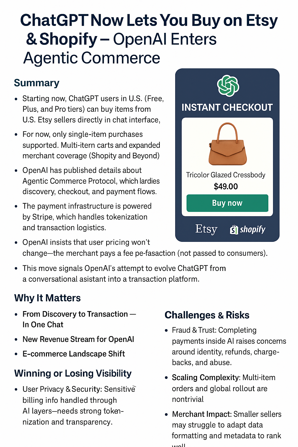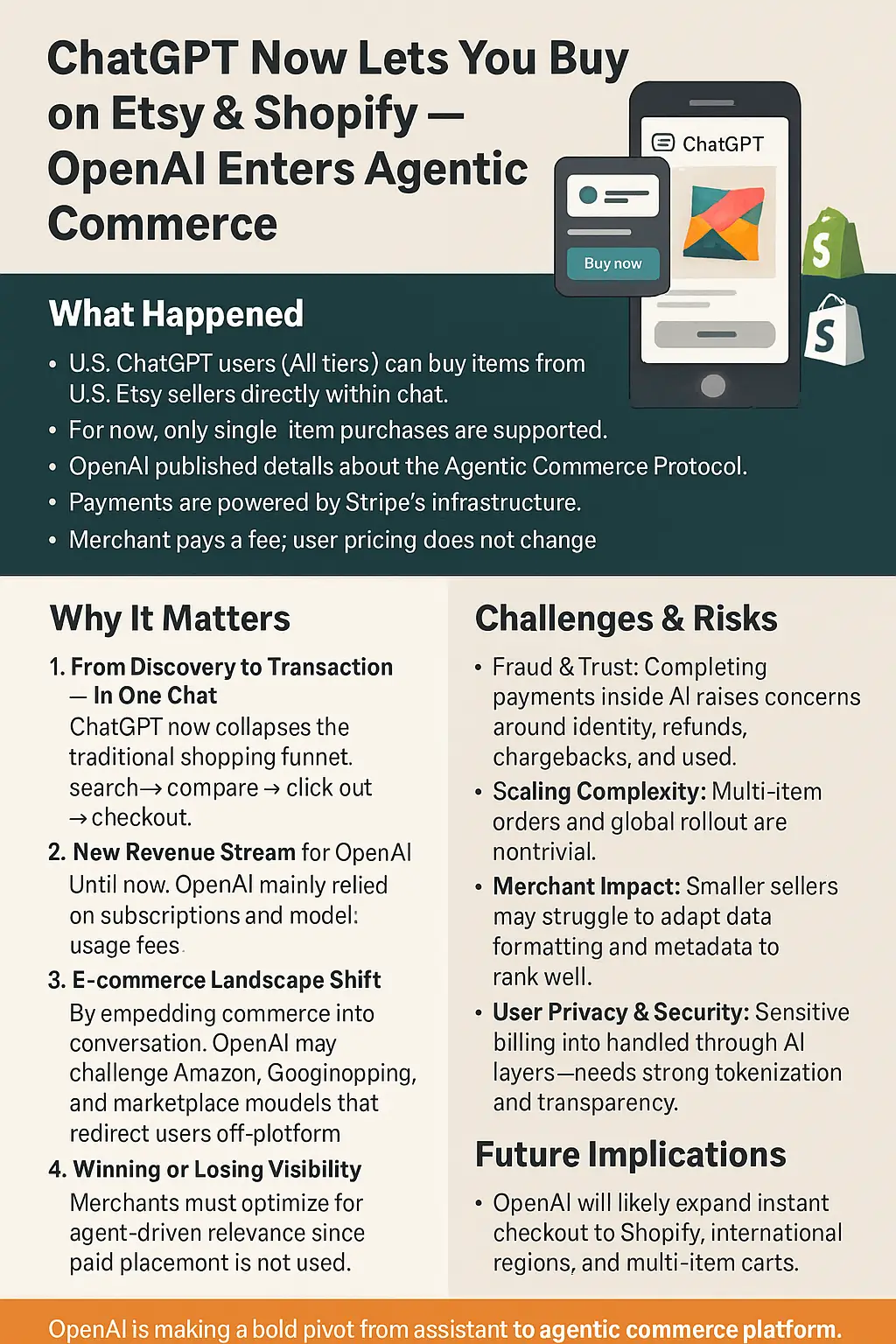 OpenAI is making a bold pivot from assistant to commerce platform. If Instant Checkout scales, it could fundamentally change online shopping—turning ChatGPT into both your advisor and your checkout counter.